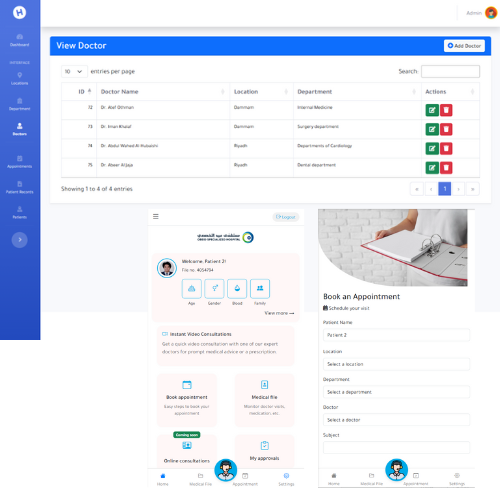 The Hospital Appointment System is a Laravel-based web application designed to streamline appointment scheduling for hospitals and clinics, featuring a user-friendly admin dashboard. It utilizes MVC architecture and model relationships to manage locations, departments, doctors, patient records, and appointment setups efficiently. Additionally, the system includes a downloadable APK for mobile access, ensuring a seamless experience for patients on the go.